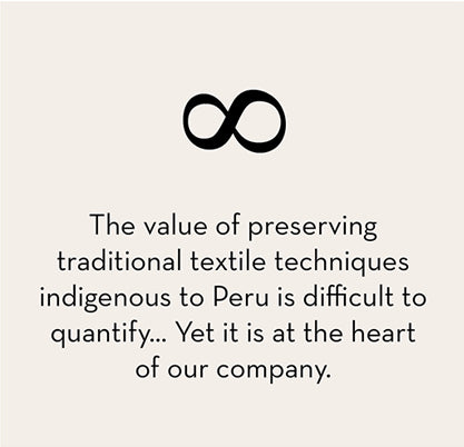 For more than 20 years our collaboration in Peru has inspired a new way of looking at fashion. Indigenous Designs was founded to give modern expression to the ancient traditions of Peruvian textile design, and a path out of poverty to the dynamic people who live there.